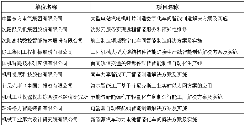为进一步推动智能制造相关技术的落地发展,梳理机械行业企业在智能制造方面的基础及智能制造实施成效,宣传行业内企业在智能制造解决方案方面取得的成绩,我会于2019年5-6月份面向行业重点企业单位征集了一批智能制造实施案例,经中国机械工业联合会智能制造分会专家委员会评审,遴选出十个具有代表性的实施案例项目作为《2019中国智能制造十大实施案例》,具体信息如下: